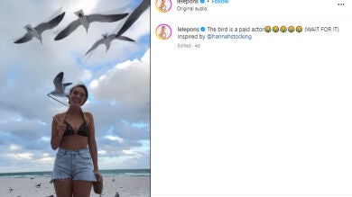 "El pájaro es un actor pagado", bromeó la influencer y cantante venezolano-estadounidense de 27 años en la leyenda del clip publicado para sus 53,8 millones de seguidores en la plataforma.