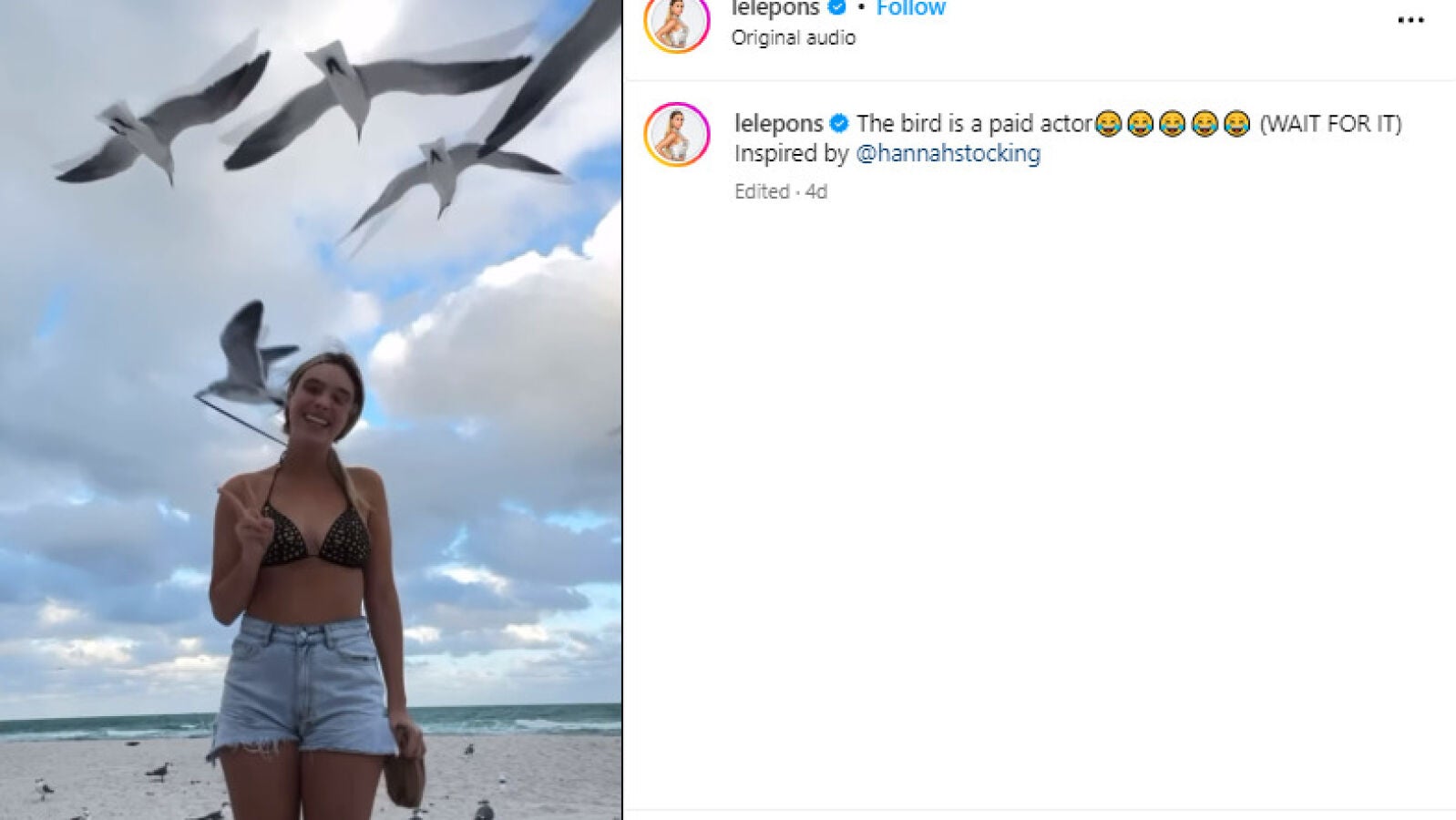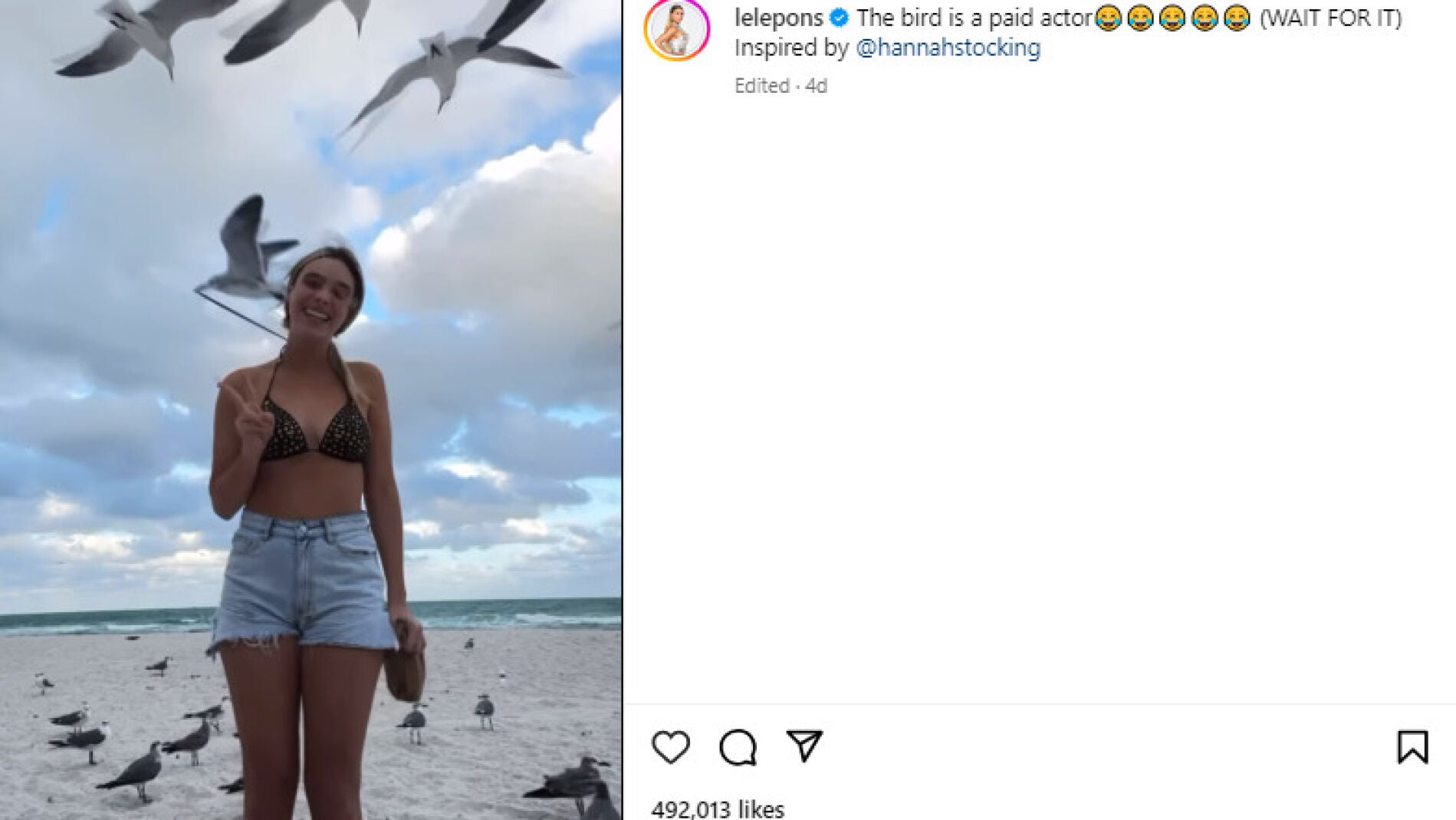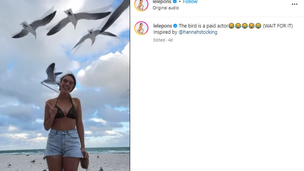 La influencer, cantante y modelo venezolana Lele Pons subio el sorprendente vídeo a su cuenta de Instagram con más de 50 millones de seguidores. Todos se quedaron flipando con el momento en que la gaviota agarra la parte de arriba de su bikini y la desata con su pico.