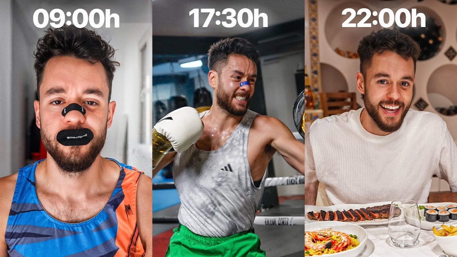 La segunda parte del día la reserva para el boxeo. Entrena de nuevo por la tarde-noche, esta vez con guantes puestos, puliendo técnica y resistencia. Incluso cuando cena fuera de casa, cuida su alimentación y continúa con la suplementación. La jornada termina en torno a las tres de la madrugada, tras compaginar entrenamientos, compromisos laborales y algo de descanso.