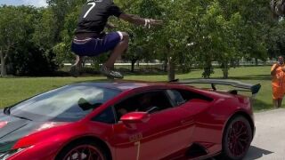 El último espectáculo de IShowSpeed: se juega la vida saltando sobre su Lamborghini en marcha