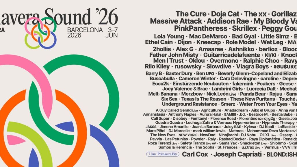 La 24ª edición del Primavera Sound se celebrará del 4 al 6 de junio en el Parc del Fòrum de Barcelona, y contará con más de 150 artistas anunciados a ocho meses de su celebración. Entre los cabezas de cartel destacan The Cure, Doja Cat, The xx, Gorillaz, Massive Attack, Addison Rae y My Bloody Valentine. Según el festival, estos siete nombres representan “cinco décadas de música popular, del rock distorsionado al hip hop, del pop a la electrónica de vanguardia”, subrayando la identidad poliédrica del evento.