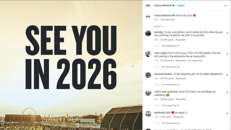 El festival madrileño, amigo de los juegos y el suspense a la hora de desvelar sus carteles, ha vuelto a sorprender y lo ha hecho desconcertando a sus fans con dos extrañas publicaciones en las que se lee "See you in 2025" y "See you in 2026" junto con el mensaje "more info soon" (más información pronto).