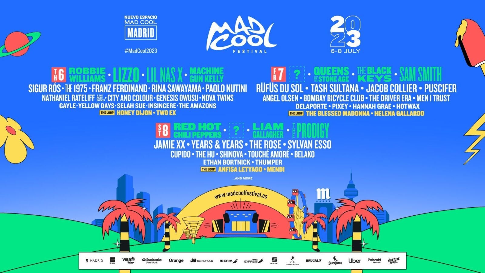 La sexta edición del Mad Cool, que se celebrará del 6 al 8 de julio de 2023, ha presentado un cartel de gran influencia británica, con nombres como Liam Gallagher, Robbie Williams, Sam Smith o The Prodigy, a quienes acompañarán el rock estadounidense de Red Hot Chili Peppers y The Black Keys.