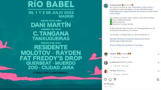 El Festival Rio Babel vuelve con un potente cartel que mezcla grandes nombres de nuestra música como C. Tangana, Dani Martín, Tanxugueiras y Rayden con artistas internacionales de la talla de Residente y Molotov.