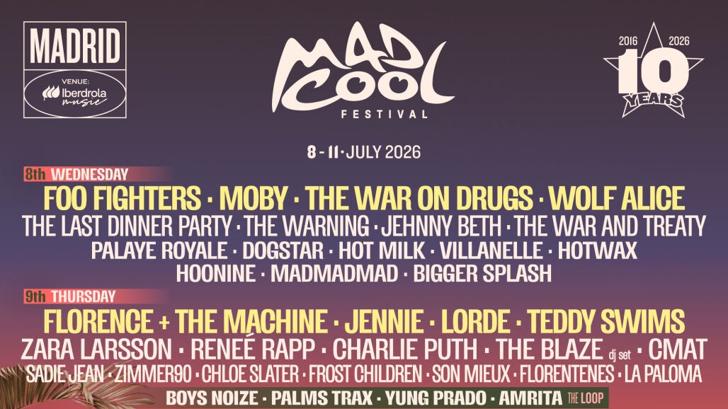 El festival madrileño celebrará su décimo aniversario del 8 al 11 de julio de 2026 en el recinto Iberdrola Music con cuatro jornadas llenas de la mejor música con nombres tan potentes como Lorde, Moby, The Black Crowes, Pixies, KIngs Of Leon o David Byrne entre otros.