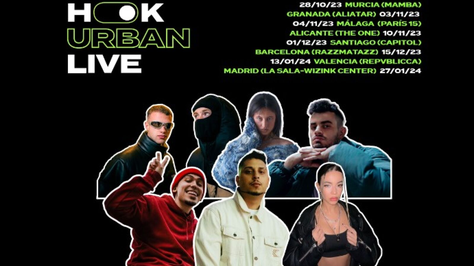 Hook Urban Live llega con lo mejor del panorama de música urbana. Estará presente en ocho salas de toda España durante los meses de otoño e invierno de este año y enero de 2024. La gira contará con Dollar Selmouni, Sofia Gabanna, GARABATTO, Xina Mora, Yeico x Toni y Daps.