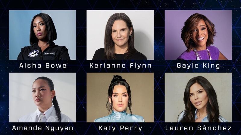 Perry no estará sola en esta aventura. La acompañarán Lauren Sánchez, periodista y pareja de Bezos; Gayle King, copresentadora de CBS Mornings; Amanda Nguyen, científica investigadora; Aisha Bowe, exespecialista en cohetes de la NASA; y Kerianne Flynn, productora cinematográfica.
