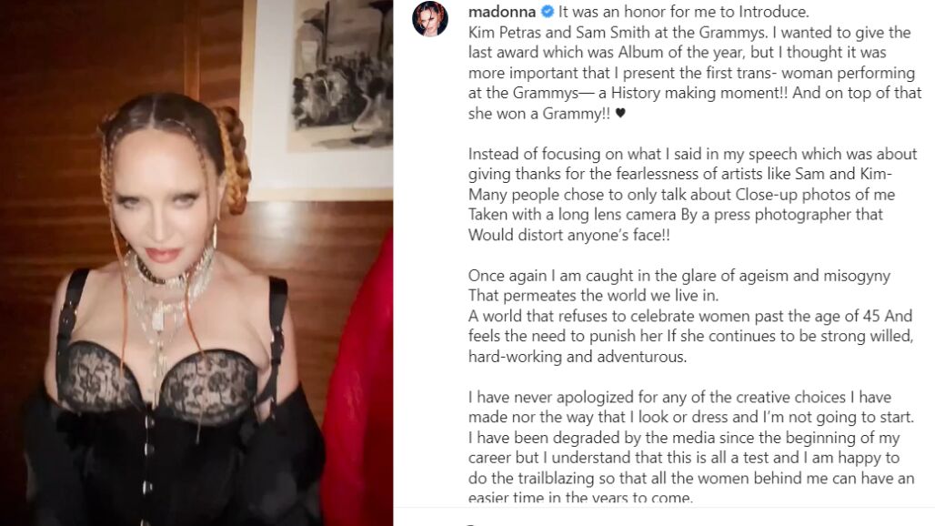 El discurso que Madonna publicó después de la última gala de los Grammy ha provocado tantos aplausos como abucheos, por el hecho de que la cantante se haya sometido a varios retoques estéticos y hable de la discriminación a las mujeres maduras. Aunque han sido muchos los que han calificado a la artista de hipócrita, también ha habido quien ha salido en su defensa. Entre ellos, la actriz Beatriz Rico, que ha empatizado especialmente con la forma en la que se juzga el físico de las mujeres que se dedican al espectáculo.