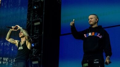 Así, desde sus primeras maquetas hasta los últimos lanzamientos del dúo, el público --ataviado con camisetas de fútbol con sus nombres, muchas de ellas de una edición hecha precisamente para este 15 aniversario-- ha repetido las canciones de discos como Martes 13 (2015), Cicatrices (2018), Luna llena (2022) o el tercer volumen de Hijos de la ruina (2021), título que hicieron con el también rapero y amigo Reclycled J, con quien han compartido gran parte del concierto y repertorio.