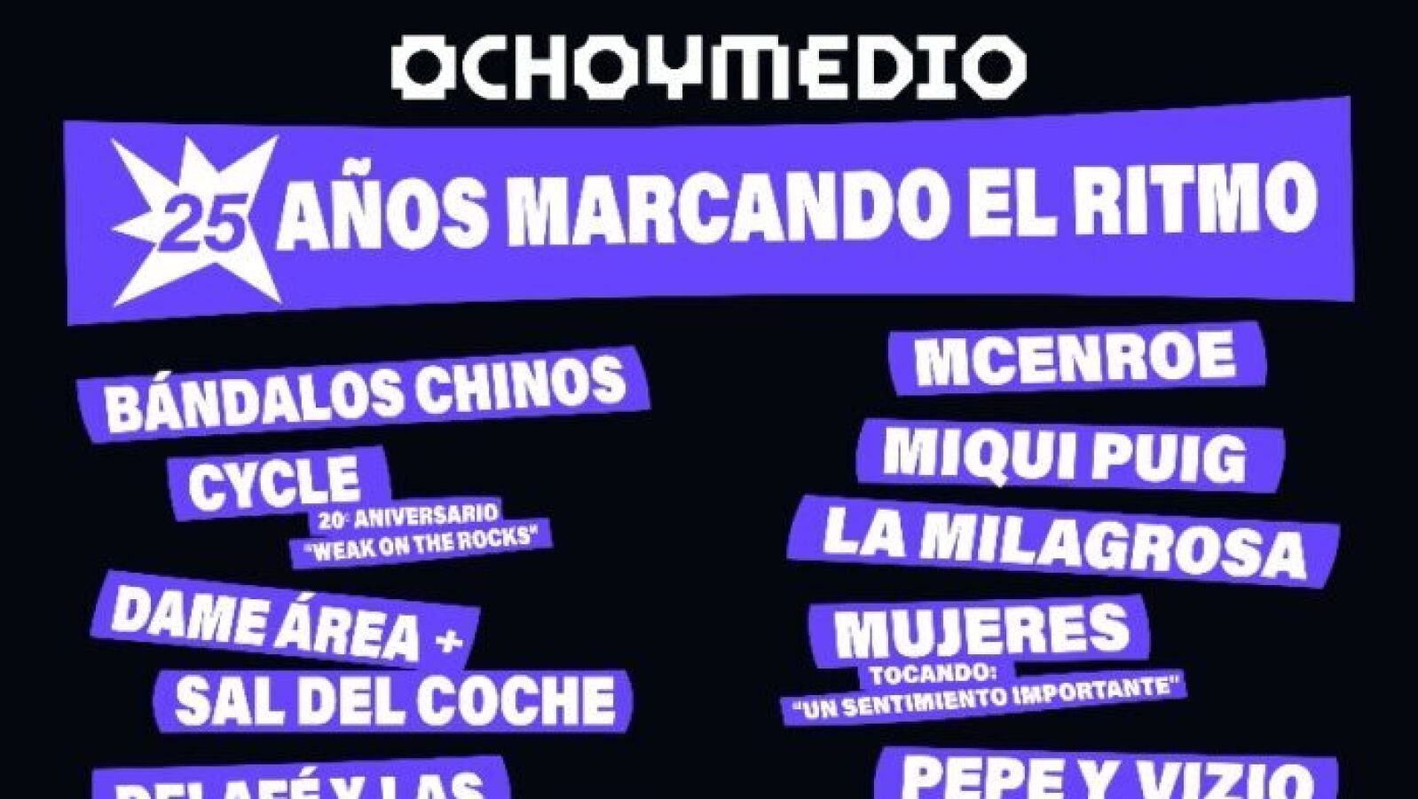 El legendario club Ochoymedio celebra sus 25 años de vida con una serie de conciertos en otoño por algunas de las salas más emblemáticas de Madrid. Mala Rodríguez, Samantham Hudson. Los Fresones Rebeldes o Triangulo de Amor Bizarro son algunos de los conciertos anunciados de los que todavía quedan sorpresas por conocer.