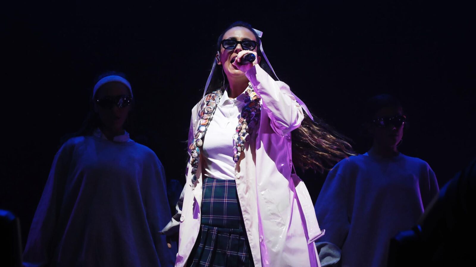 Con su ya icónico uniforme de colegiala, una forma probablemente de poner en evidencia el universo de fantasías heteropatriarcales más rancias, Bandini ha ido desgranando canciones como "Fiesta" o "A todos mis amantes" a medida que el antiguo Palacio de Deportes de Madrid se convertía en un horno en ebullición.
