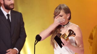 La cantante, de 34 años, recibió su 13º Grammy al Mejor Álbum Vocal Pop en la ceremonia, celebrada en el Crypto.com Arena de Los Ángeles, por su último disco Midnights, cuando dijo al público que tenía una sorpresa para ellos.