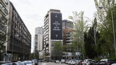 ¿La clavas o te la clavan? Desvelado el misterio de la extraña lona que ha revolucionado el centro de Madrid