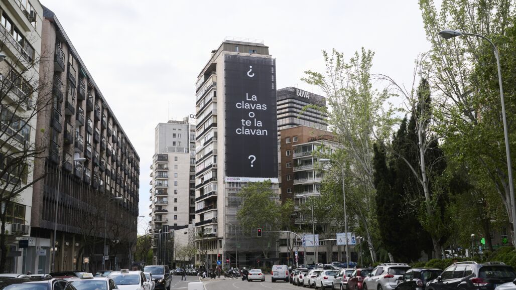 El pasado 30 de abril, Madrid amaneció con una sorpresa en plena calle: una enorme lona negra apareció colgada en el centro de la capital con una frase tan provocadora como intrigante: "¿La clavas o te la clavan?". Sin logos, sin marcas, sin pistas. Ni una arroba, ni un código QR, ni el más mínimo indicio que revelara su origen. Solo ese mensaje cargado de doble sentido que hizo que miles de personas se pararan a mirarla, a sacarle fotos y, sobre todo, a preguntarse: “¿pero esto qué es?”.