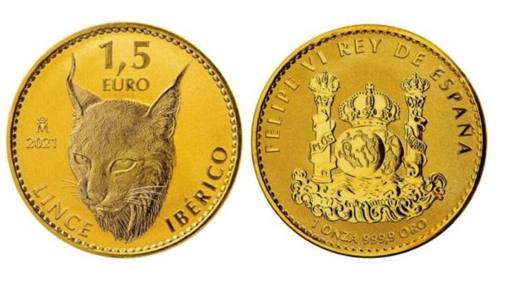 La serie de monedas está dedicada al lince ibérico. Esta pieza de oro fino, lleva en su frontal el rostro del animal junto a la marca de ceca, el año 2021 y en sentido circular la leyenda 'lince ibérico'. En su reverso, los motivos y las leyendas de un real a ocho que ilustran su anverso: la leyenda 'Felipe VI Rey de España' en sentido circular, y debajo de ella dos hemisferios bajo corona real, flanqueados por las columnas de Hércules con el lema 'Plus Ultra'. En la parte inferior se puede leer, también en sentido circular, '1 Onza 999,9 Oro'.