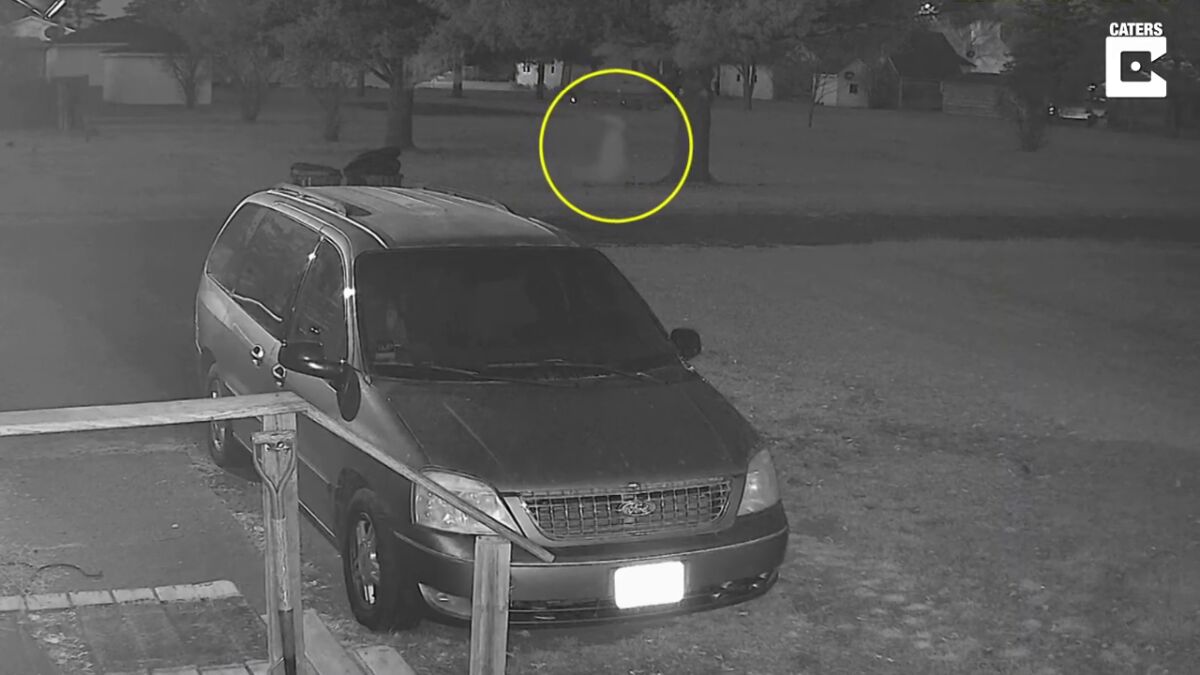 Cuando miró hacia afuera, este hombre no vio nada con sus propios ojos, pero las imágenes de la cámara seguridad de su hogar parecen mostrar una extraña figura translúcida moviéndose por delante de su porche.
