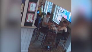 Mientras tanto, una pinta ha estallado en la misma mesa sin ser tocada. Los dos últimos incidentes se pueden ver en las imágenes de CCTV del pub.