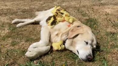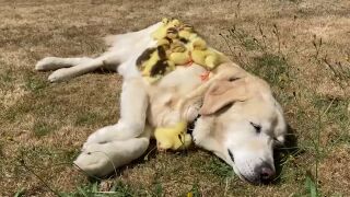Un labrador llamado Fred adopta una camada de 15 patitos huérfanos por segunda vez