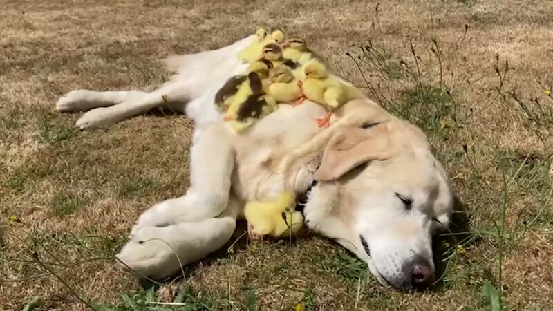 Un grupo de 15 patitos huérfanos tiene un nuevo padre adoptivo improbable: un amoroso perro labrador llamado Fred.