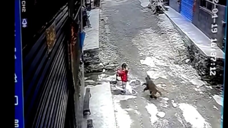 Las imágenes filmadas el 19 de abril, muestran a la niña jugando frente a su casa en Chongqing cuando un mono casi tan alto como ella se le acercó por detrás y rápidamente la arrastró.Liu, el rescatista, dijo que estaba sentado en su casa cuando escuchó a una niña llorando afuera. Salió y vio al mono arrastrando a la niña. Inmediatamente corrió tras el mono y agarró a la niña. El mono había arañado la cara de la niña. Estaba conmocionada pero físicamente bien.