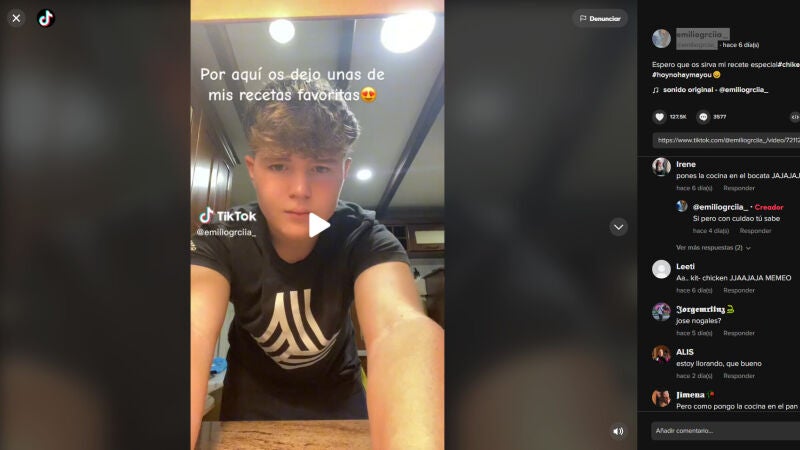En la misma linea hemos descubierto la cuenta de un joven tiktoker granadino llamado @emiliogrciia_ que está empezando a despuntar gracias a sus desternillantes recetas en inglés macarrónico.