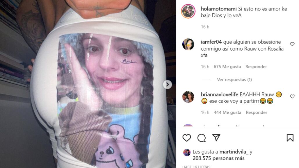 La cantante ha decidido regalar a su novio, Rauw Alejandro, unos calzoncillos customizados con una imagen del rostro de Rosalía. Por la apariencia del proyecto, parece que ha sido la misma artista la que se ha encargado de imprimir la fotografía sobre la ropa interior, e incluso ha querido añadir algunos detalles dibujados a mano. De esta forma, Rosalía ha querido dejarle claro a su pareja lo enamoradísima que está de él; ahora, podrá llevar la imagen de su novia consigo a todas partes.