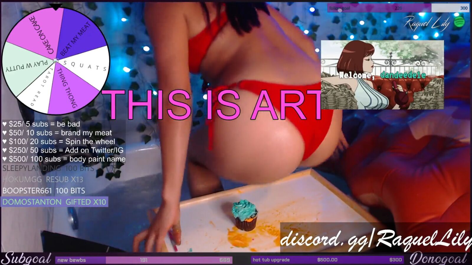 Twitch es un lugar curioso, en el que pueden llegar a mezclarse creadores de contenido de lo más diferentes. Aunque la categoría de gaming es la que más predomina en la plataforma, también son conocidas otras temáticas como el ASMR o los hot tubs, sobre todo entre el público masculino. Muchas mujeres han encontrado una buena y constante fuente de ingresos en la creación de este tipo de streams, que muchas veces juegan con la línea entre el contenido de entretenimiento sugerente y la pornografía. La streamer Raquel Lily es una de las últimas streamers en ser baneada por esta razón, después de aplastar repetidamente un cupcake con el culo mientras cantaba el 'Cumpleaños Feliz'.
