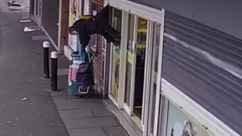 Una mujer británica de 72 años llamada Anne Hughes está dando la vuelta al mundo por un vídeo en el que se la ve quedándose colgada en el aire por culpa de las persianas de la tienda en la que trabaja.