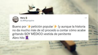Al verle dijo en la calle que era médico, "la primera vez que he tenido que gritarlo en la calle". El tema es que lo hizo vestida de nazarena, ya que estaba en procesión como hermana de la Cofradía de la Expiración de Linares. Y toda su historia se ha convertido en un fenómeno viral. "La verdad es que cuando publique el tweet con la foto pensé que mis amigos se reirían un rato y que solo lo vería mi círculo más cercano Cuando desperté al día siguiente y vi que me había respondido tantísima gente no podía creérmelo", nos cuenta María, que cree que si el hilo se volvió tan viral "más que por la historia en sí por como está contado".