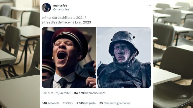 Lo llamen selectividad, EvAU o EBAU lo único cierto es que estos días las redes sociales, especialmente Twitter, se llenan de mensajes y memes relacionados con estos exámenes.