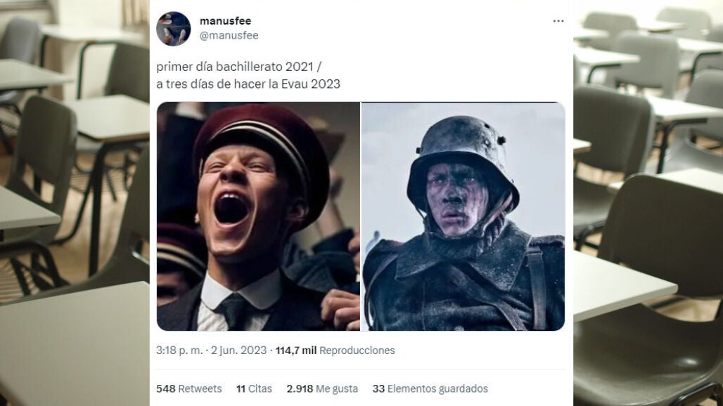 El lunes 5 de junio ha dado comienzo la selectividad 2023 en la Comunidad de Madrid, La Rioja, Cantabria y Murcia. El comienzo de la temida EvAU (o EBAU, según la comunidad autónoma) esta generando numerosos memes en redes sociales y esta es una selección de los mejores.