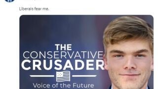 Un joven republicano pro-Trump de 16 años @GOPJosh20 tiene un podcast personal en la plataforma política estadounidense Red Future Radio en el que dice dar voz a "las voces del futuro". Recientemente ha publicado una imagen promocionando el podcast de cara a las próximas elecciones en la que aparece muy cambiado.