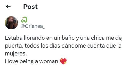 Sin embargo, entre todos ellos ha destacado uno en especial. @sarhleeee ha escrito un comentario que también se ha vuelto viral en el que cuenta una historia parecida que le ocurrió a ella también. "Una vez tuve un ataque de pánico en el baño de la universidad, una chica se sentó en el piso conmigo y empezó a hablarme hasta que me calmara, no me soltó la mano hasta que me paré para irme al final me dio un abrazo y me fui". Además, añade "I love being a woman".