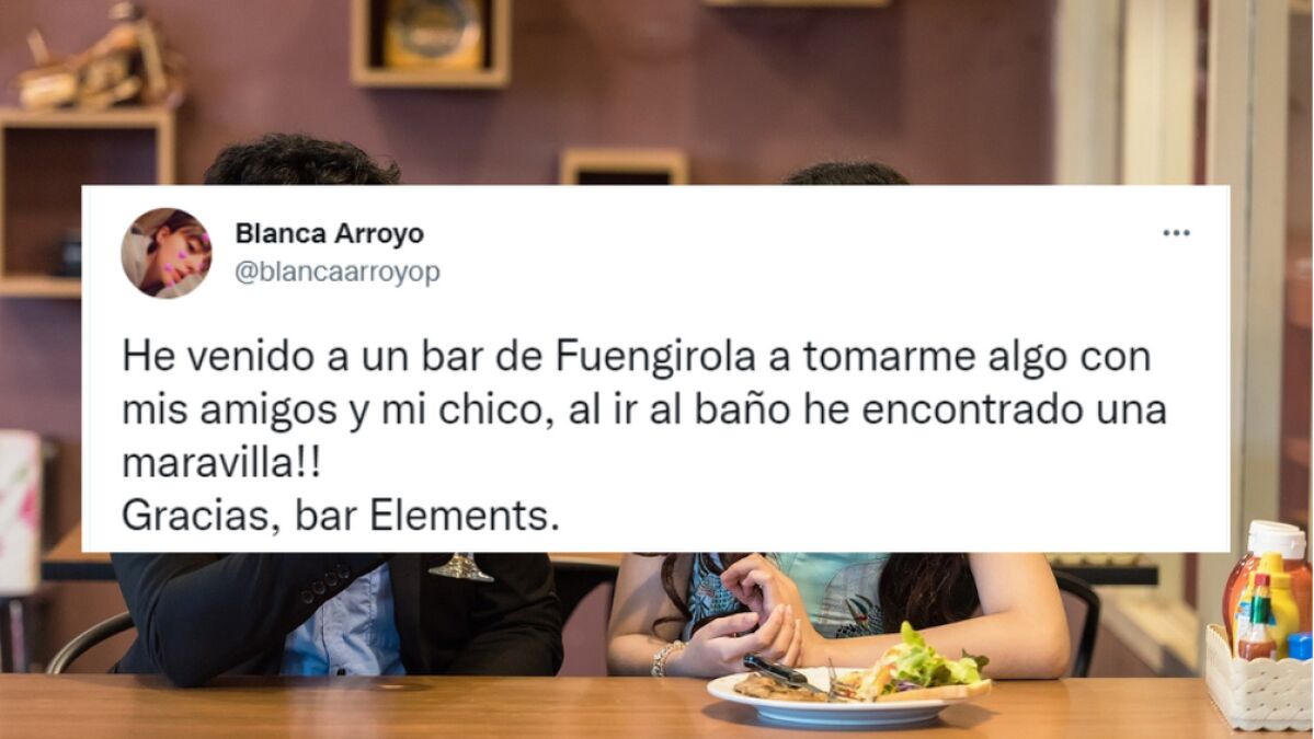"Nuestro personal está capacitado para ayudarte y hará todo lo posible para que llegues segura a casa. Recuerda que no estás sola y que hay alguien que te ayudará", finalizaba el mensaje de este cartel. Al verlo, esta usuaria de Twitter quiso compartirlo en su cuenta con un mensaje de agradecimiento al bar: "He venido a un bar de Fuengirola a tomarme algo con mis amigos y mi chico, al ir al baño he encontrado una maravilla!! Gracias, bar Elements".