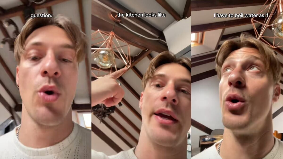 En su reciente vídeo de TikTok, que ya cuenta con más de 400 mil reproducciones, @coreyyy.exe comparte su experiencia viviendo en un apartamento español. "El lugar parece haber sido construido en 1488, lo cual es increíble, pero... ¿por qué tengo que hervir agua como si estuviéramos en ese año?" comenta el chico.