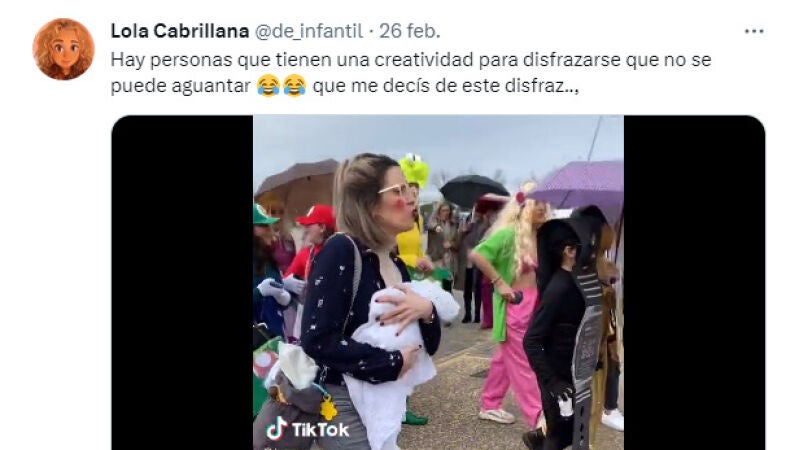 Esto es lo que hizo un usuario de TikTok llamado Tamayeo que subió un vídeo de un original disfraz que había encontrado en la cabalgata de Carnaval de Conil, en Cádiz.