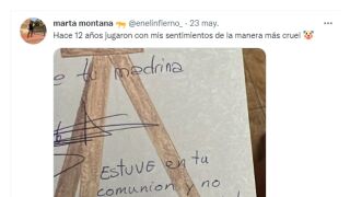 "Hace 12 años jugaron con mis sentimientos de la manera más cruel", escribió esta joven murciana en un tuit que ya acumula más de 15.000 retuits y 247.000 likes.