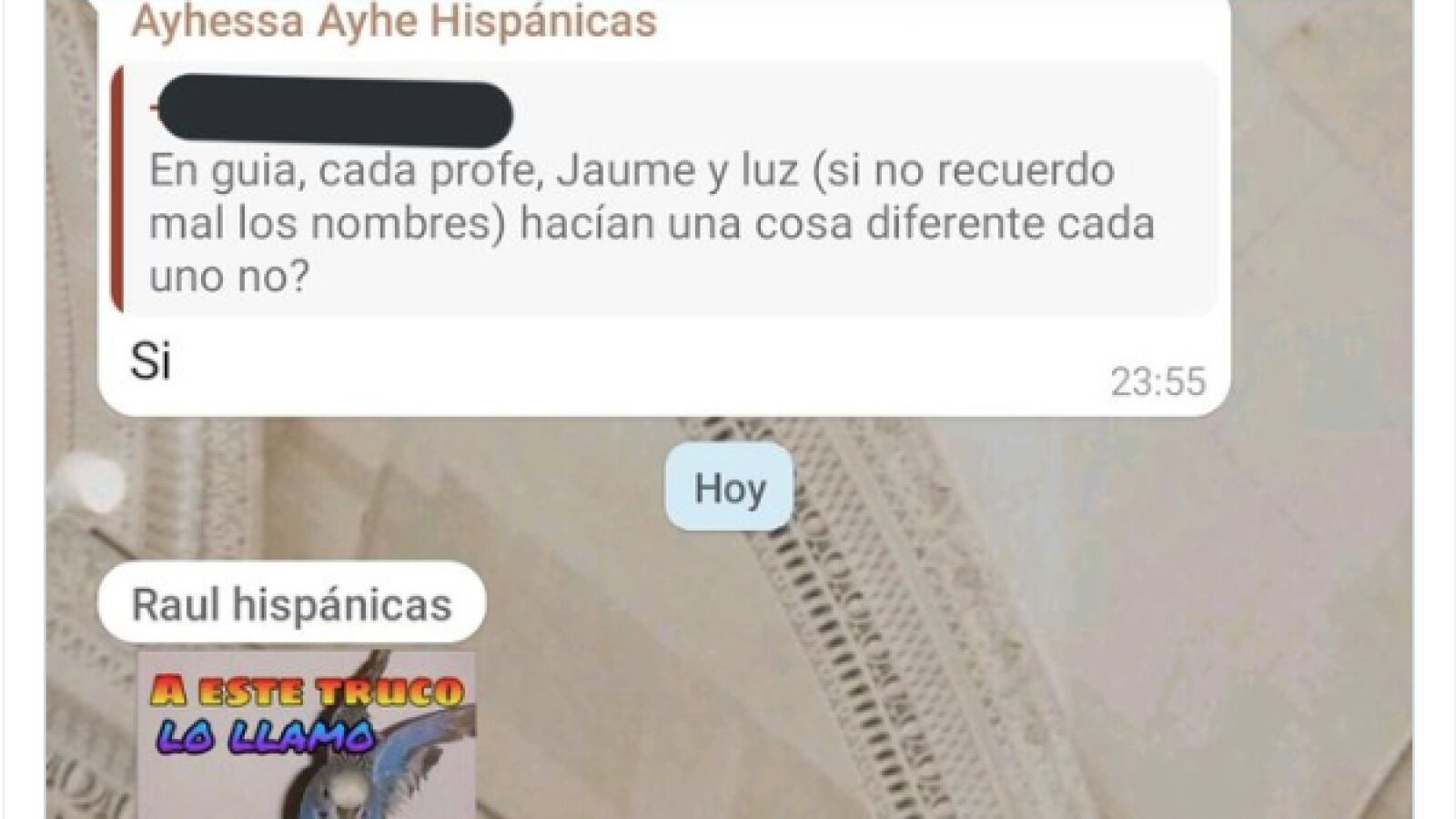 'Raúl hispánicas', así es como esta tuitera tiene guardado a su compañero que, después del primer día de clase, ha salido del grupo tras comunicar que dejaba la carrera, pero la forma en la que lo ha hecho ha sido de lo más original.