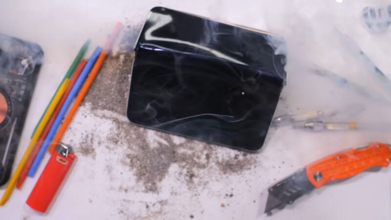 Tras demostrar que la resistencia al polvo del móvil no es tal - más allá de la pantalla -, Jerry procede a hacer la prueba que tumbó a las dos iteraciones previas de esta línea de móviles. Y es ahí que el Pixel Fold de Google no solo se dobla y se rompe, sino que su batería dice "hasta aquí hemos llegado", explota y empieza a echar humo. Es la primera vez que le ocurre algo así al youtuber, que lleva diez años realizando estos mismos tests a todos los cacharros que pasan por sus manos. Para terminar, comprueba esa posible segunda cámara, descubriendo que es el sensor de proximidad. No obstante, poco importa ya, pues claramente ese teléfono tiene problemas mayores.