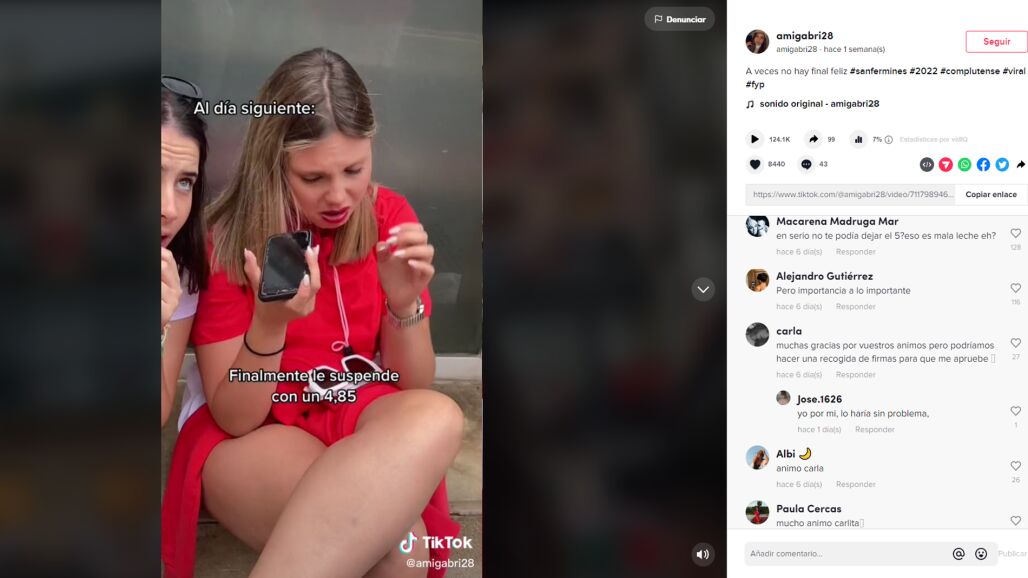Carla se enteró de su nota de recuperación de asignatura en medio de una verbena. En un principio, el profesor le había dado por aprobada la materia con un 5. Al ser una nota que la permitiría acceder a la Universidad, Carla se emocionó como la que más.