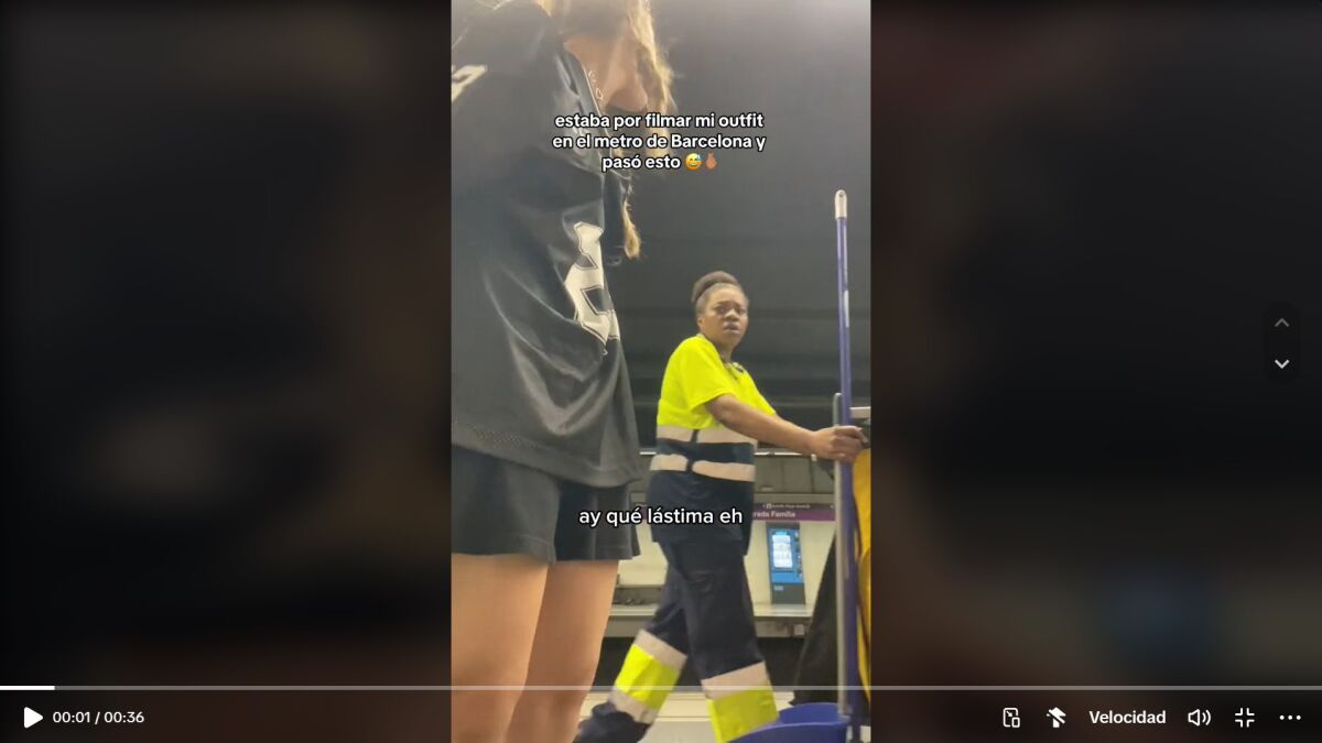 La tiktoker @florcigonzi se encontraba en la parada Sagrada Familia del metro de Barcelona grabando un vídeo para enseñar su outfit cuando ocurrió algo totalmente inesperado. De pronto pasa por detrás de ella una limpiadora del metro diciendo "Ay, qué lastima, eh". La tiktoker, desconcertada, pregunta: "¿por qué?", a lo que la mujer aclara: "Porque no quiero salir en tu vídeo y ahora tengo que detenerme aquí para limpiar", y seguidamente aparece delante de la cámara.