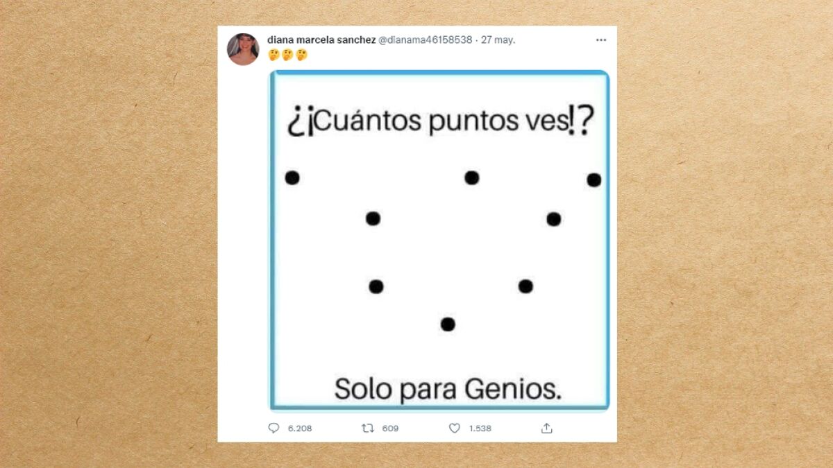 "¿¡Cuántos puntos ves!? Solo para genios", se podía leer en la imagen compartida por @dianama46158538 en este tuit que ha acumulado 600 retuits, 1.500 'me gusta' y la friolera de 6.000 comentarios.
