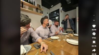 Cuatro amigas consiguen que todos sus novios se vistan igual para ir a cenar y arrasan