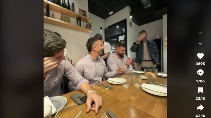 "Esto lo habéis planeado, pero es que hasta llevamos la misma marca. Es imposible, estamos idénticos, tío", exclamó otro, cada vez más desconcertado. Mientras tanto, sus novias, divertidas y a duras penas conteniendo las carcajadas, terminaron confesando todo cuando apareció el cuarto integrante, completando la escena.
