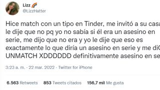 La curiosa razón por la que una mujer rechazó a su cita en tinder ”Eso es justo lo que diría un asesino “