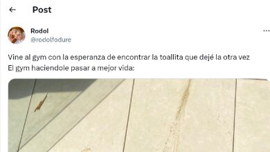 En el suelo, vemos a la pobre toalla, pisoteada hasta decir basta y llena de tierra. Su lamentable estado ha provocado muchas risas en la red social. "Trabajo en un gym y si después de un mes nadie reclama, nuevo trapo para limpiar los muebles", responde una usuaria.