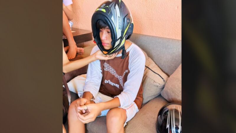 El desacierto de un joven al colocarse el casco de la moto del revés se vuelve viral