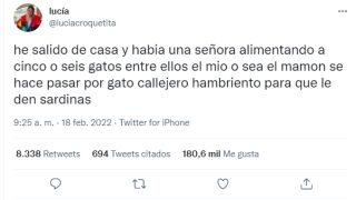 Lucia contó en un hilo de Twitter la curiosa historia de su gato y ha recibido más de 180.000 'me gusta'