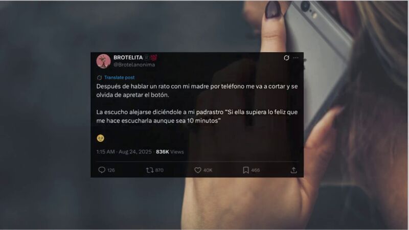 Eso fue lo que ocurrió cuando una usuaria, @brotelanonima, compartió en un tuit una anécdota tras hablar por teléfono con su madre. Según relató, la llamada había terminado, pero su madre, olvidando colgar, se alejó y le dijo a su esposo: “Si ella supiera lo feliz que me hace escucharla, aunque sea 10 minutos”.