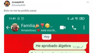 El tuitero vasco @Juveepik10 se ha vuelto viral al compartir la sorprendente conversación que tuvo con su madre en el grupo de WhatsApp familiar tras aprobar álgebra. Dijo que estaba desnudo y la reacción de su madre fue de los más dramática.
